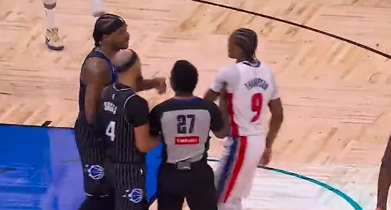 比赛的第二节,卡特扣篮被吹进攻干扰球遭斯图尔特鼓掌挑衅,双方爆发口角。